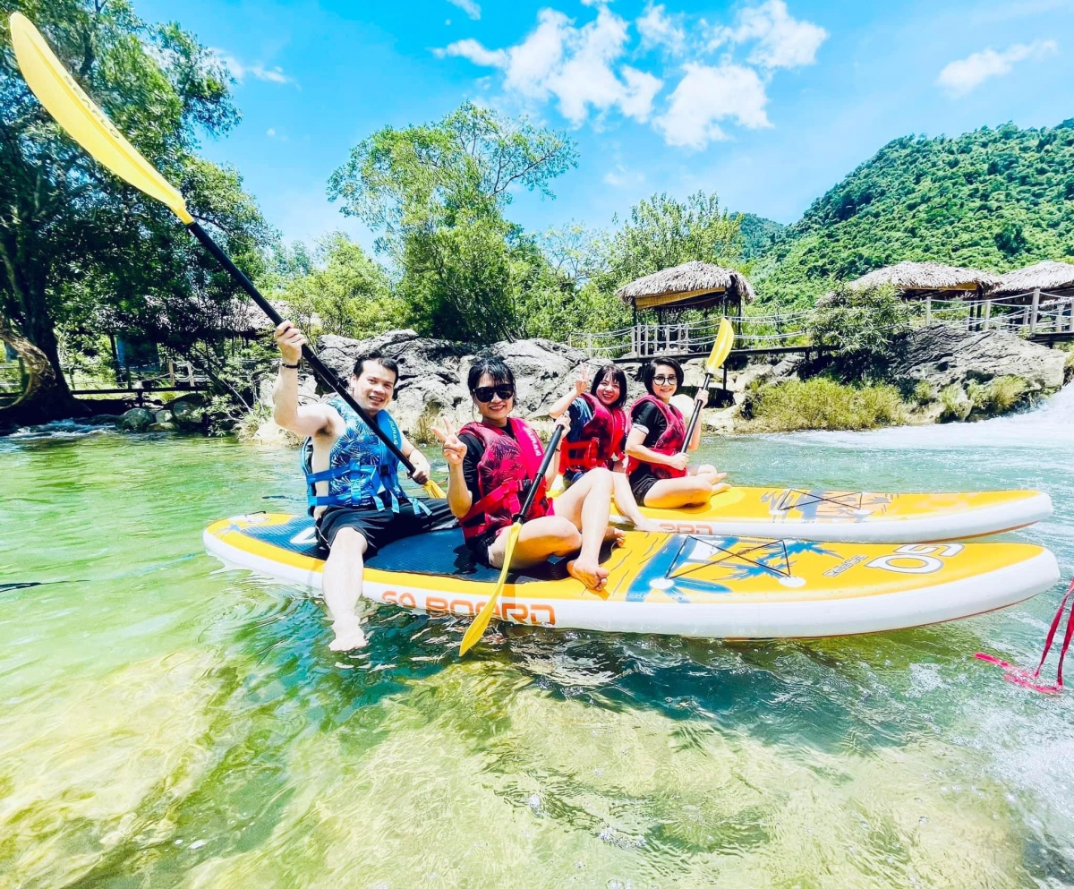 Hoạt động thể thao: Các trải nghiệm hoạt động bạn không thể bỏ qua đó là chèo thuyền SUP, Kayak trên dòng suối êm đềm.