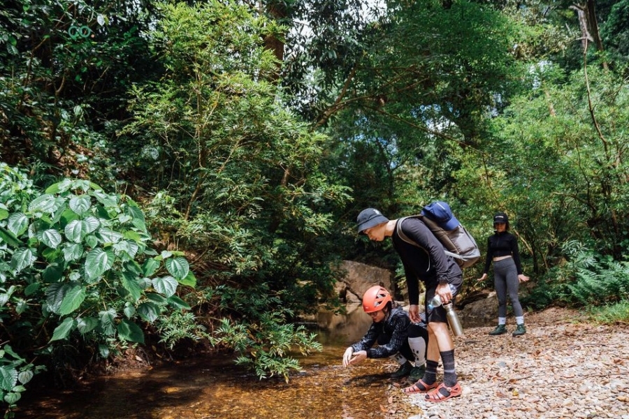 - 09:30 AM: Khởi động làm nóng cơ thể trước khi khởi hành. Bắt đầu hành trình tại Km19, đi bộ xuyên rừng rậm, vượt địa hình núi, đường bằng, leo dốc và vượt qua rặng núi đá tai mèo khoảng 3km. Đắm mình trong khung cảnh thiên nhiên, núi non trùng điệp cùng rừng tre đặc trưng của Thung Trẹ